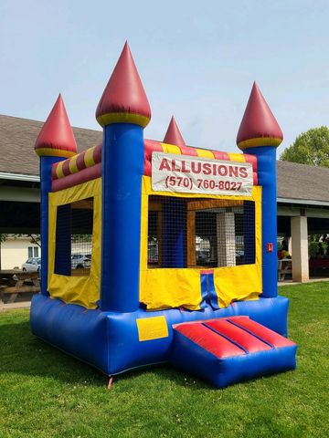 Visualize the excitement on a child's face when they arrive at an event and see the colorful tapestry of a princess and castle across the top of the Pink and Blue Princess Dream Bounce House!The large enclosed bounce area is 14' x 13', offering plenty of room to move around.