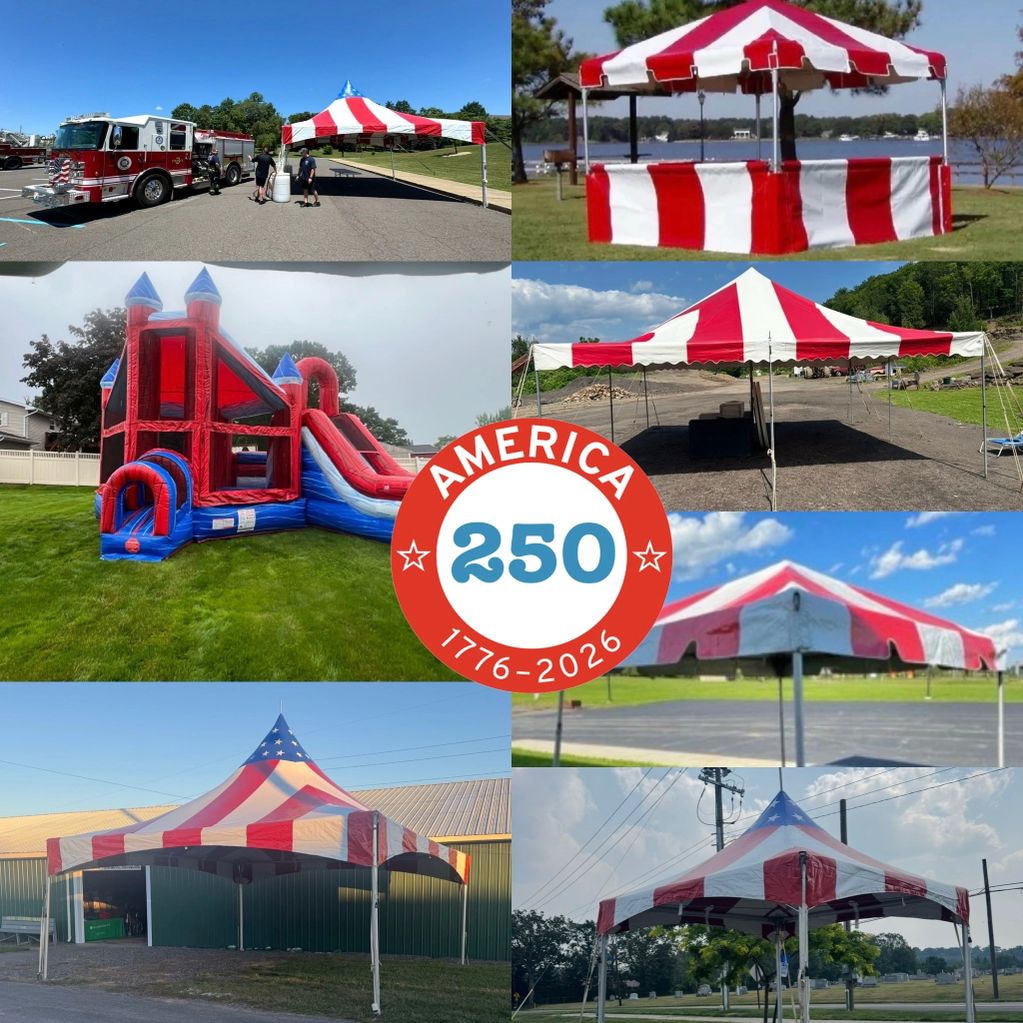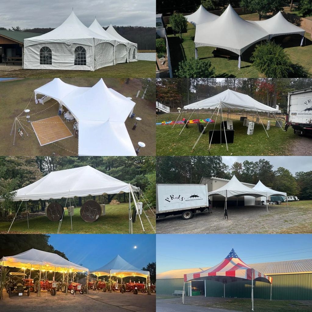 100-150 guests set up. Tent liner, chandeliers, LED globe lighting, Dance floor, tables, chairs, Dj table, food table, sidewalls and more.